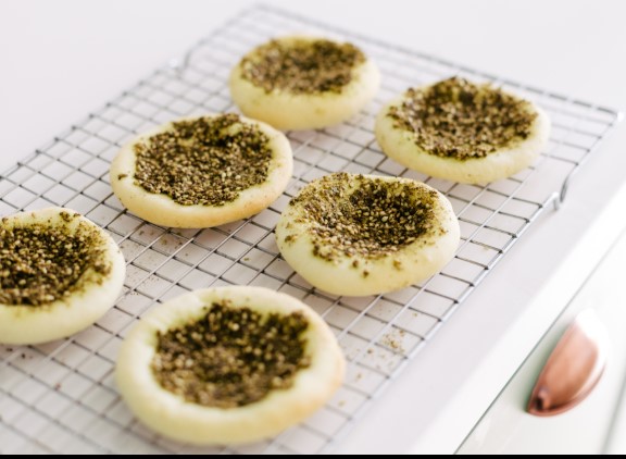 • esfiha de muçarela com zaatar (R$ 18)